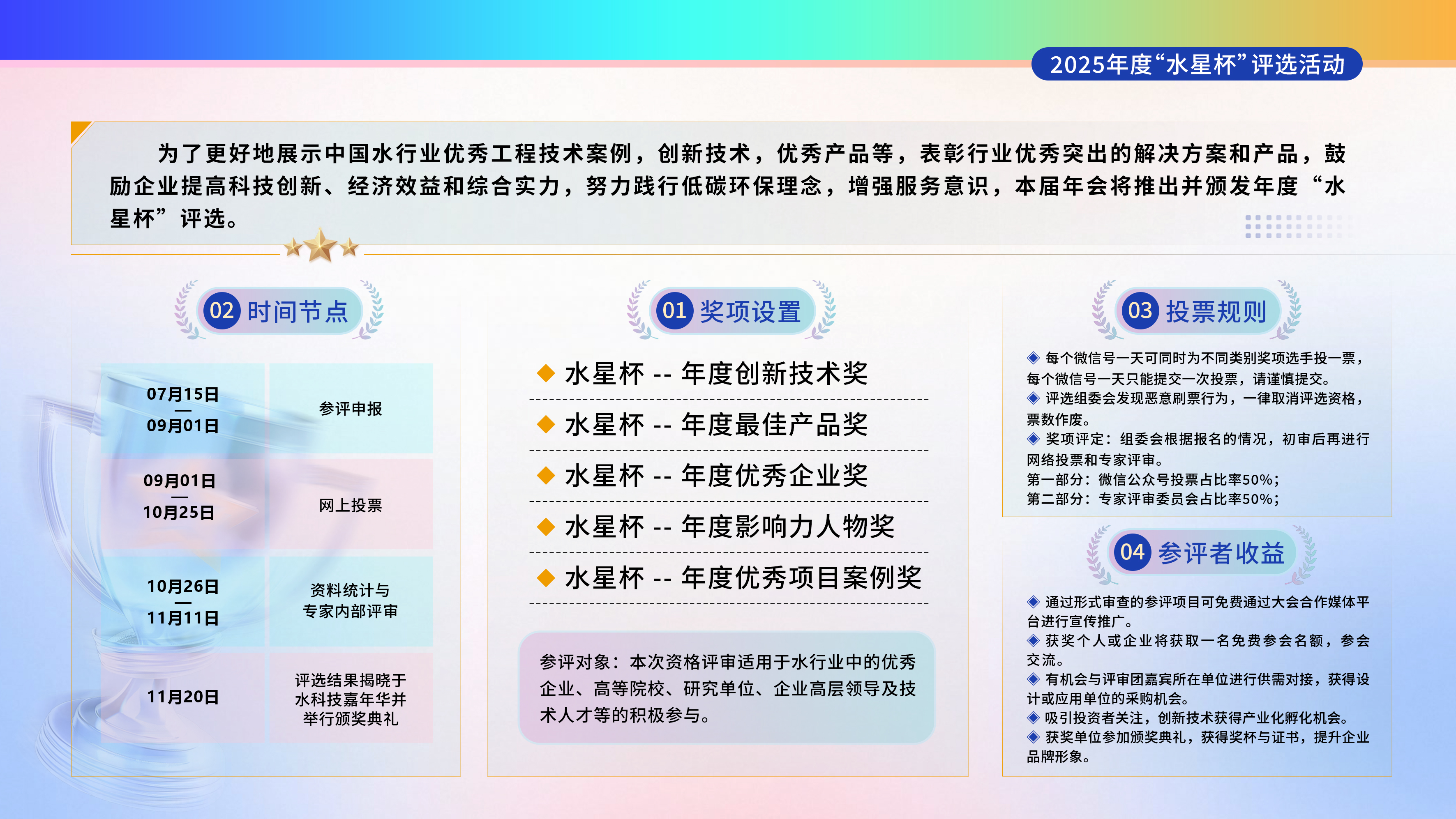 · 價值賦能顯著:獲獎成果將獲得行業權威認可,納入 “技術成果庫”,與全國 300 余家水務集團、工業園區直接對接,加速創新技術從實驗室走向生產線,讓創新真正轉化為產業效益。